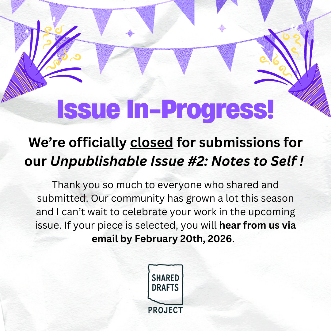 Shared Drafts Project is a space for the work that has nowhere to go, for the writers who were told they don’t know how to write, for the things we wished we could say out loud.